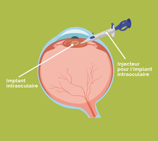 La capsule est remplie de produit viscoélastique afin de faciliter la mise en place de l’implant intraoculaire. Celui-ci est positionné dans un injecteur qui permet de l’implanter de façon contrôlée dans l’œil sans agrandir l’incision.